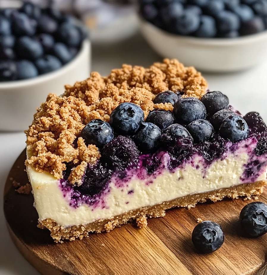 - Textural Delight: Enjoy the contrast between the creamy cheesecake, crunchy crumble topping, and plump blueberries in every bite.