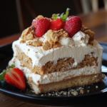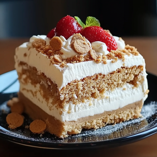 Indulge in the irresistible delight of Cookie Butter Tres Leches Cake, a sumptuous twist on the classic three-milk cake perfect for any occasion. This dessert features layers of moist sponge cake soaked in a rich mixture of heavy cream, sweetened condensed milk, and evaporated milk, all infused with the delightful flavor of cookie butter. Topped with a light whipped cream and garnished with crushed Biscoff cookies, this cake is guaranteed to impress friends and family alike. Whether it’s a birthday celebration or a holiday gathering, this decadent treat will leave everyone craving more.